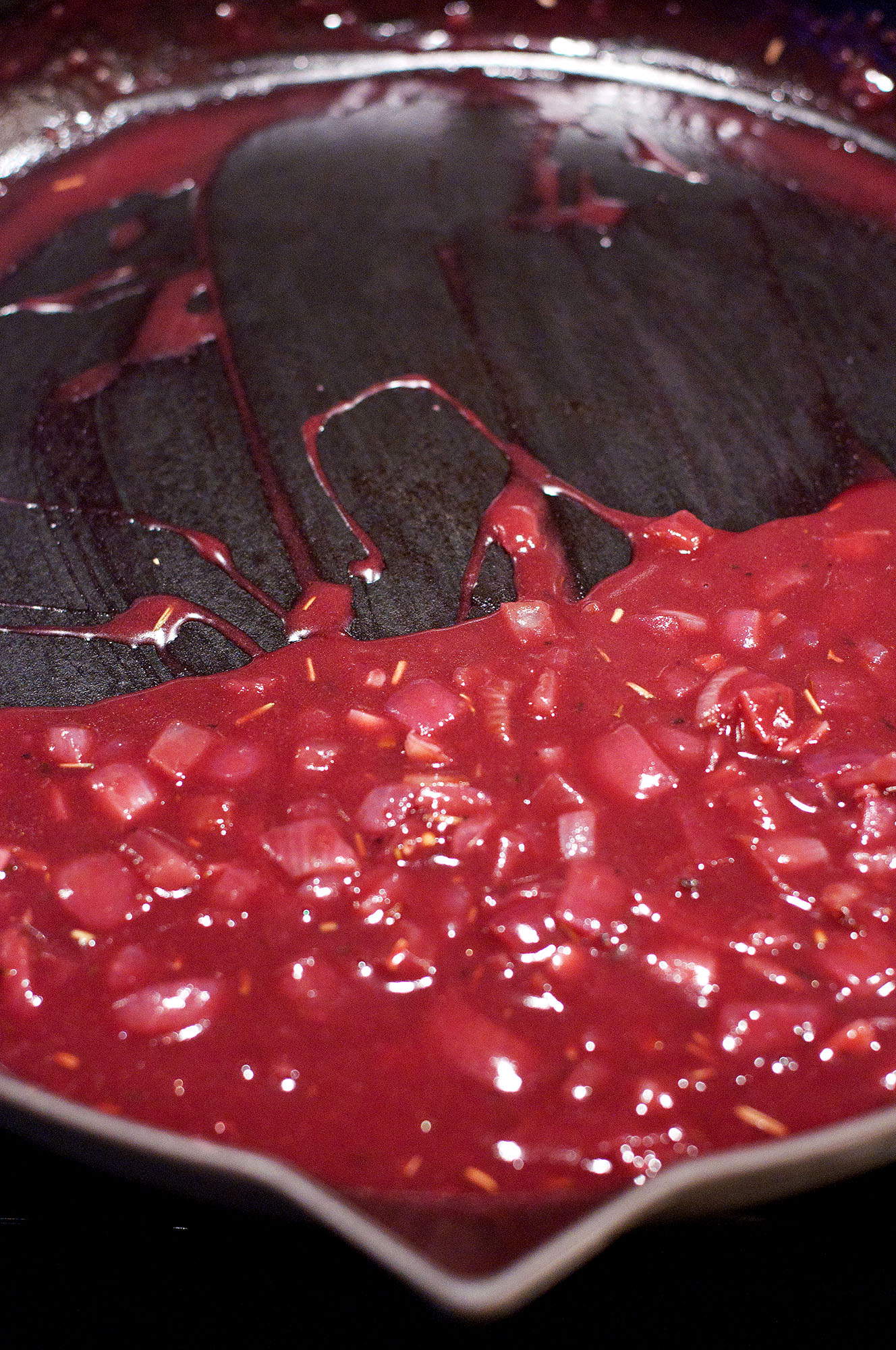 - Reduce until alcohol has burned off and the reduction is thick enough to coat a spoon. Taste reduction to ensure alcohol has burned off.